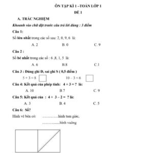 - Các dạng toán tư duy lớp 1: Phép cộng trừ đơn giản, so sánh, sắp xếp, nhận biết hình dạng, tìm quy luật…