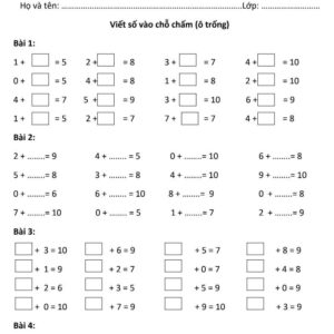 ĐỀ ÔN TẬP TOÁN HỌC KÌ 1 – LỚP 1