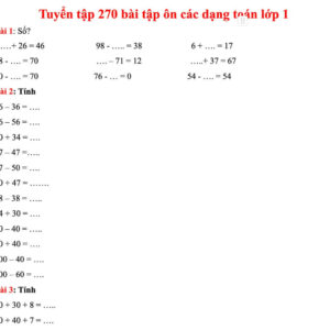 - Các dạng toán tư duy lớp 1: Phép cộng trừ đơn giản, so sánh, sắp xếp, nhận biết hình dạng, tìm quy luật…